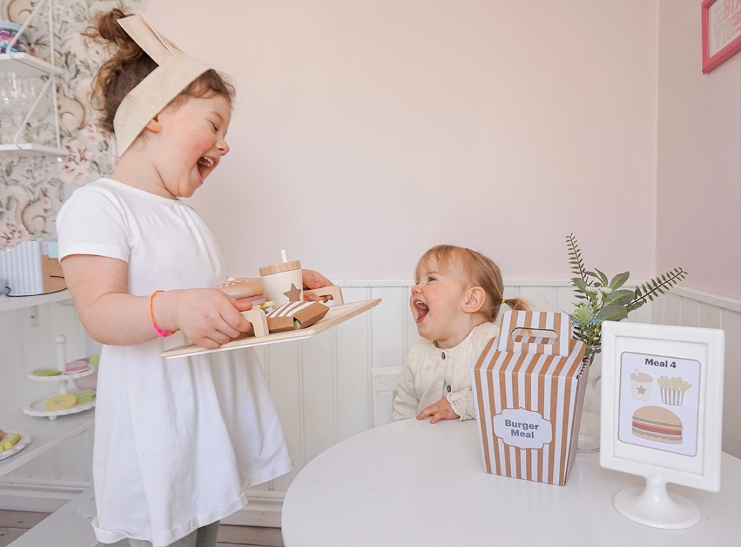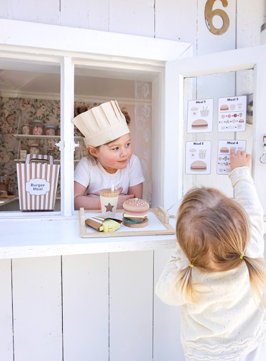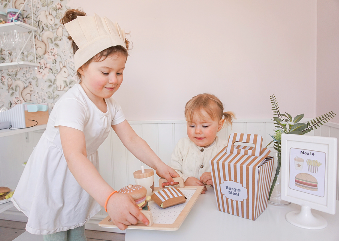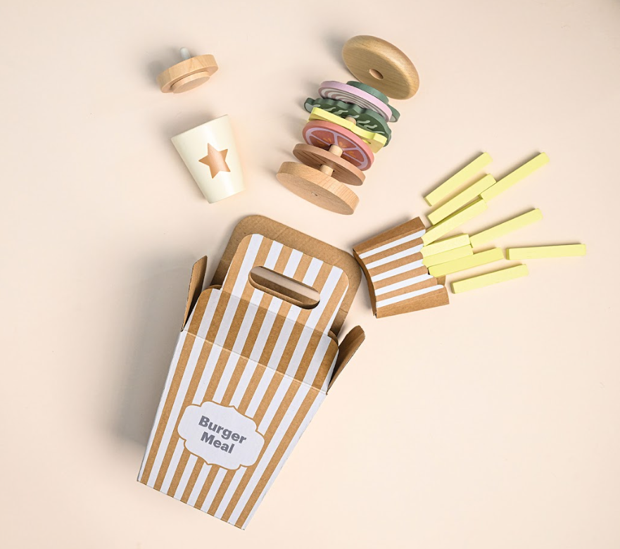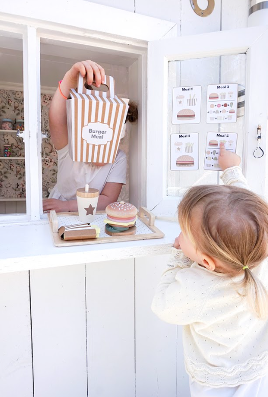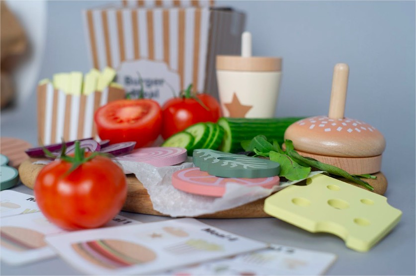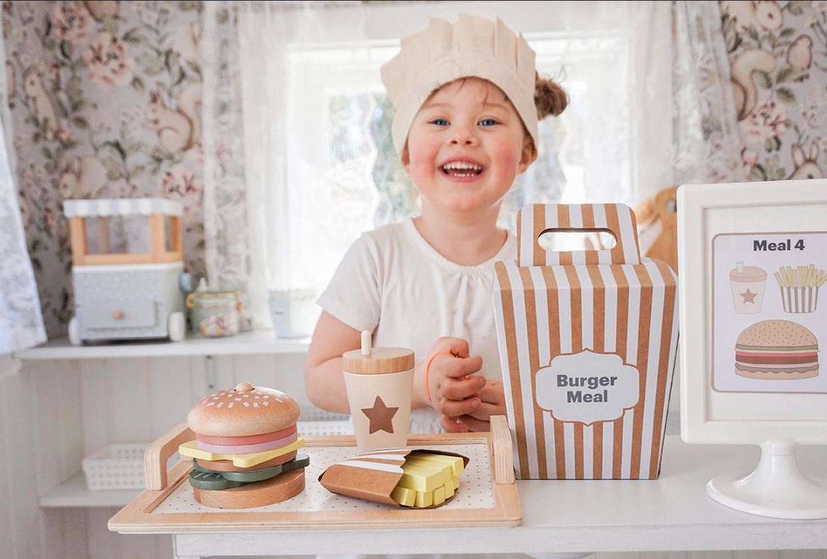 Четирите меню карти предлагат различни комбинации между бургер, пържени картофи и напитка, като оставят въображението на детето да води играта. Игра, която насърчава креативността и ролевата игра.
