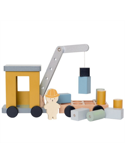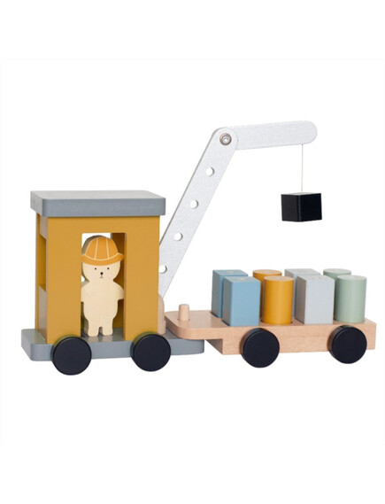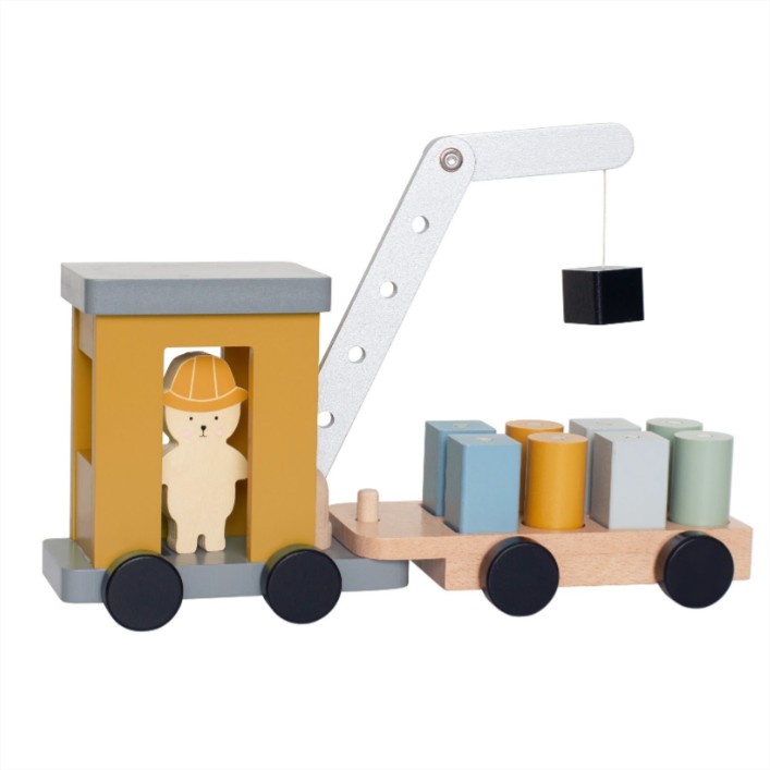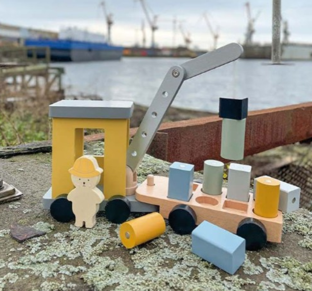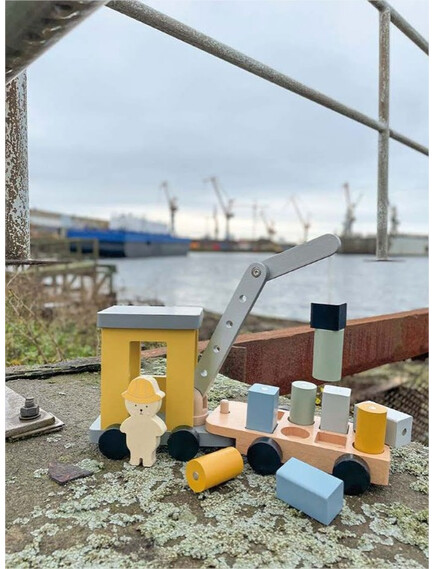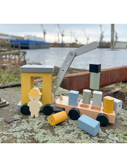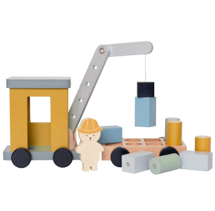 Дървен кран с тухлички и магнит, с размерите, които могат да държат и малките ръчички!