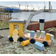 Кранът е стабилен, но и много лек. Има 8 тухли в цилиндрична форма и лебедка отгоре, за да може да ги преместите до ръба. Можете да го завъртите както желаете, тъй като той се върти в различни посоки и също се движи нагоре и надолу.
