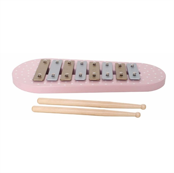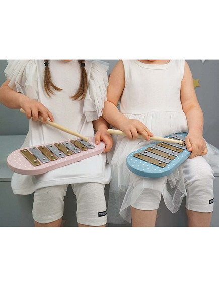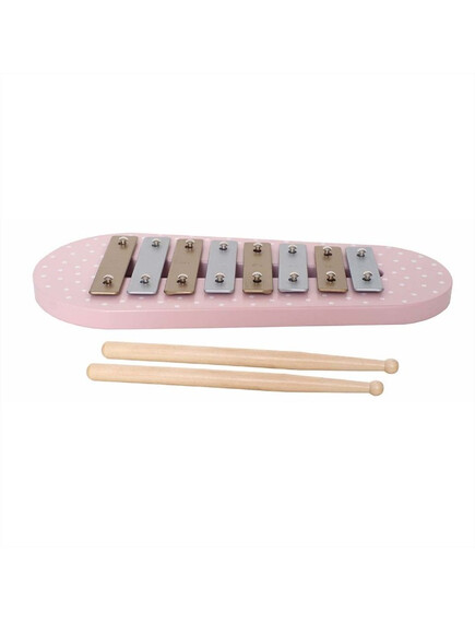 Съдържа осем музикални пластини, осветени с приятни нюанси и две палки. Удряйки с тях по пластините на дървения ксилофон ще се създаде нежен звук, много по-красив и приятен от този на металния.