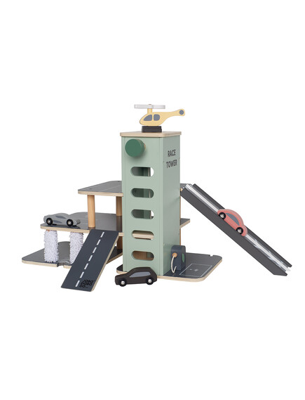 Сетът включва: 1 x паркинг, 1 х площадка за хеликоптер, 1 х колонка за зареждане, 3 x колички, 1 x хеликоптер 1 x рампа 1 x състезателна рампа, 1 х паркинг и автомивка