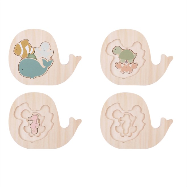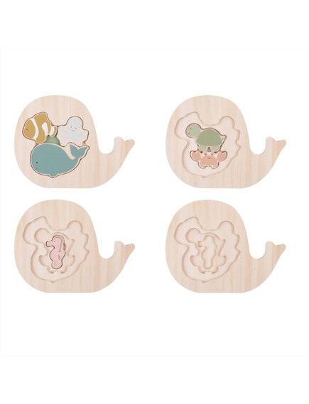 Най-красивият и забавен дървен пъзел с животни на различни нива и размери.