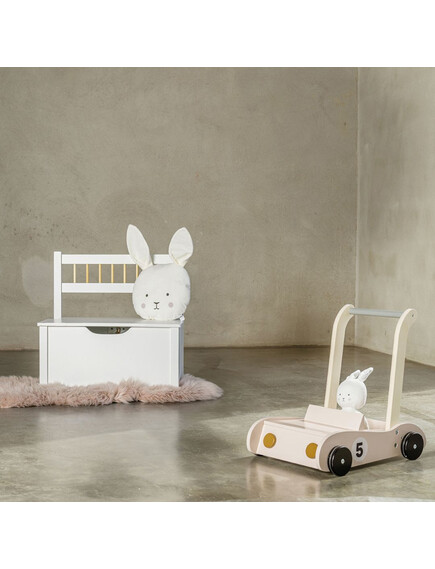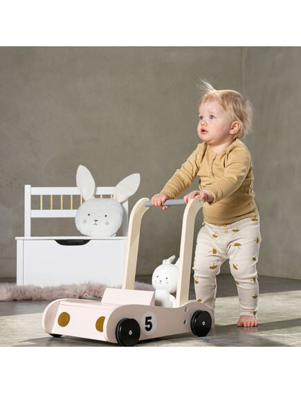 Има вграден багажник,където ще стоят любимите играчки на Вашето бебе.