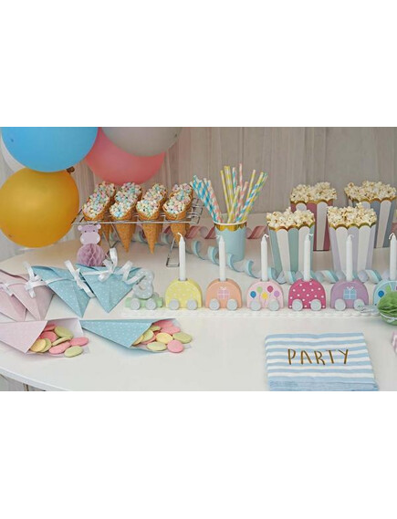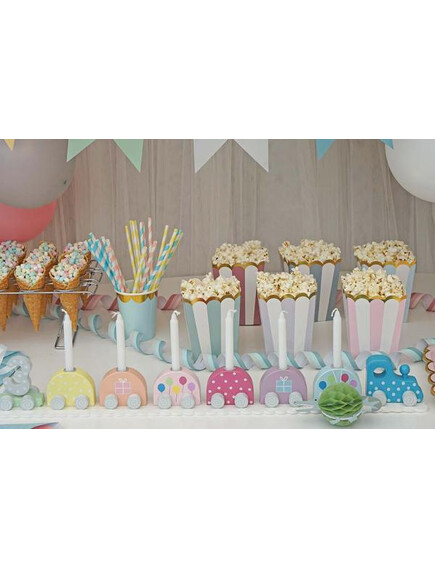 Оригинален дървен влак за свещи със 7 вагона в различни пастелни цветове!