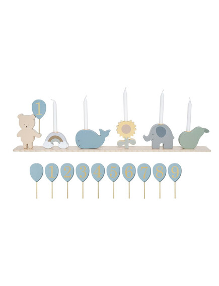 Всяка година поставяте числото, което представлява възрастта на детето на ръката на мечето и декорирате масата за рождения ден.