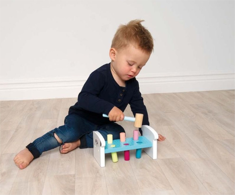 Детето може да удря многократно, да вади и слага цилиндрите, забавлявайки се!
