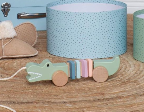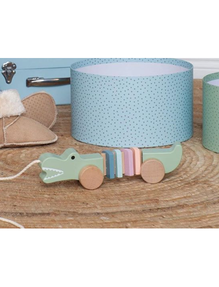 Детето Ви може да разхожда своя крокодил на свобода където пожелае! Той има две колела като крачета, които безпроблемно се движат върху каквато и да е повърхност, а детето неусетно тренира двигателните си умения!