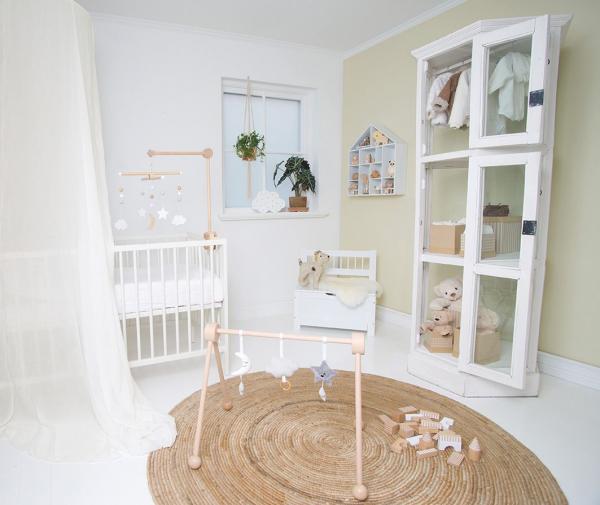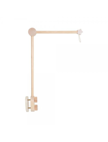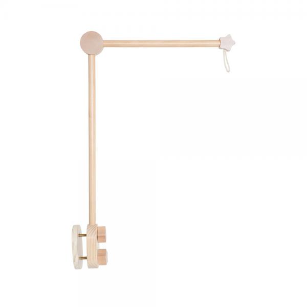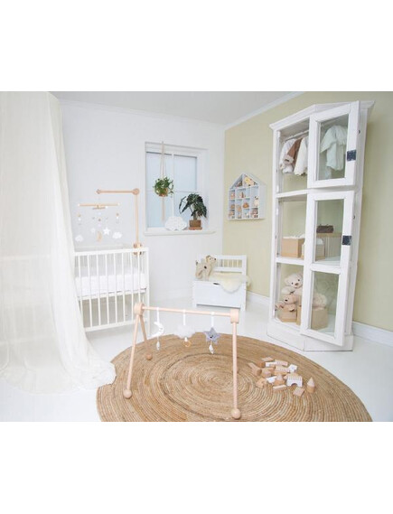 Стилна, дървена стойка със сиво лакирано поритие, която ще държи любимите играчки на Вашето дете, над бебешката люлка/кошара!