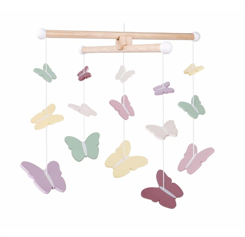 Играчката има очарователни пеперуди в прекрасни цветове . Цветовете и багрите помагат да се стимулират сетивата и моторните движения на детето през първите месеци.
