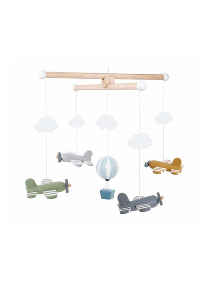 Играчката има очарователни самолети в прекрасни цветове . Цветовете и багрите помагат да се стимулират сетивата и моторните движения на детето през първите месеци.