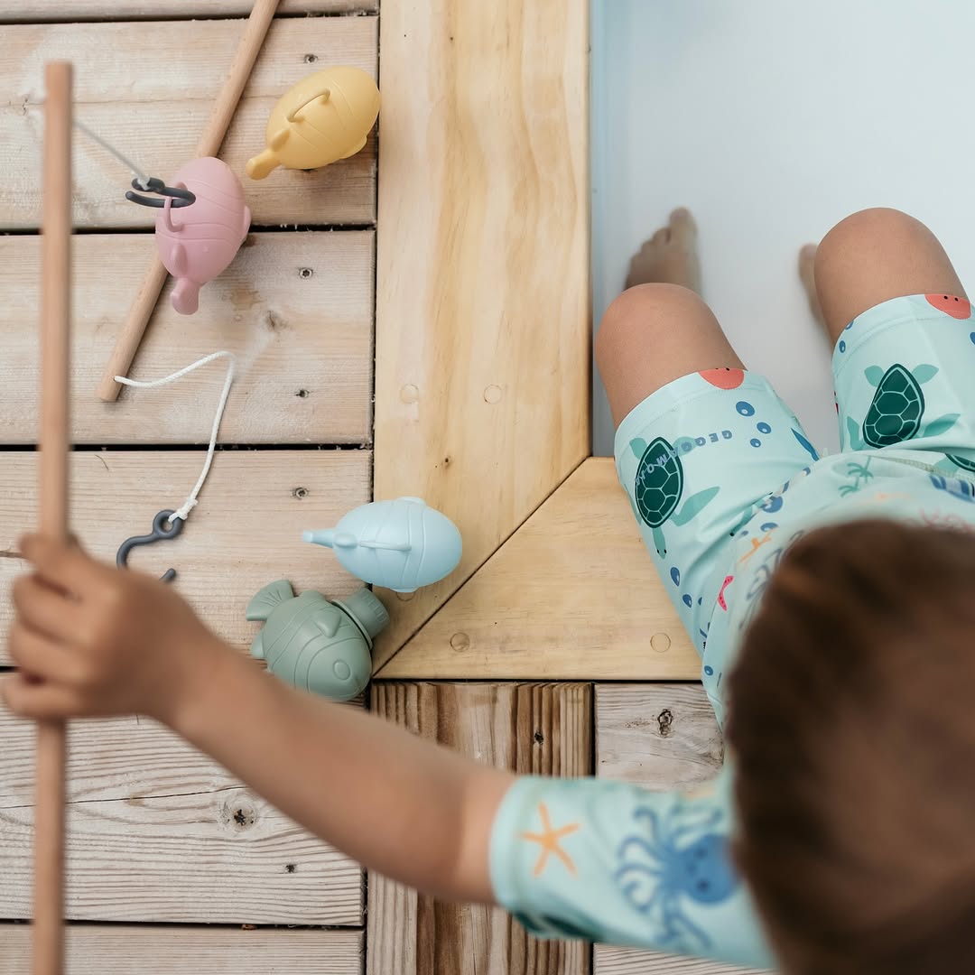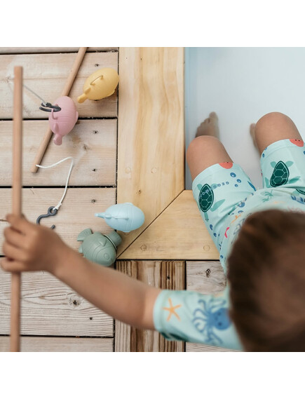 Превърнете къпането в забавно риболовно преживяване с Go Fishing – комплект, специално създаден за малките изследователи, които обичат водата.