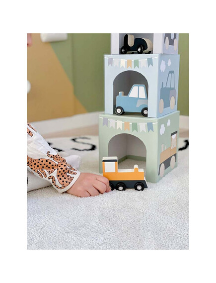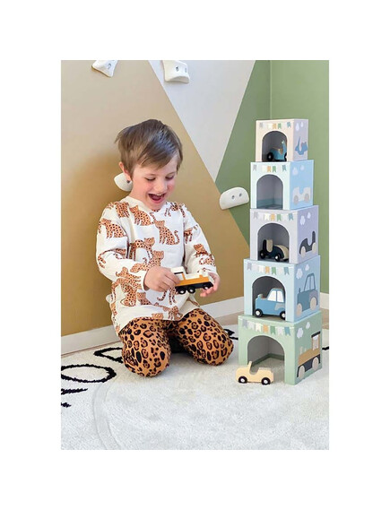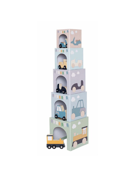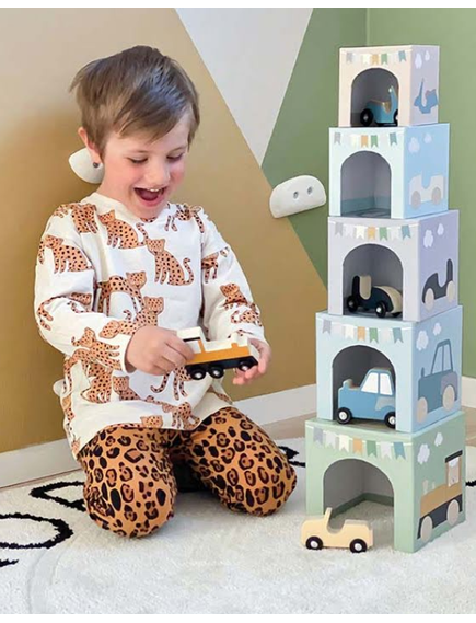 Кубчетата са създадени така, че детето да може да създаде кула, подреждайки ги едно върху друго.