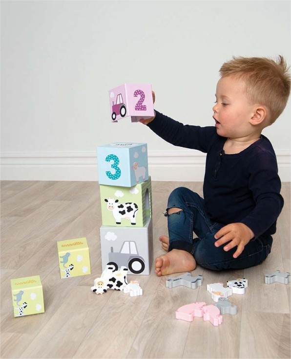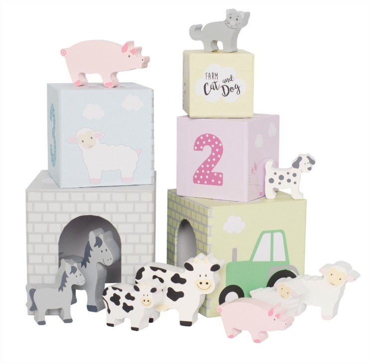 Кубчетата са направени от дебел картон, а животните са дървени!