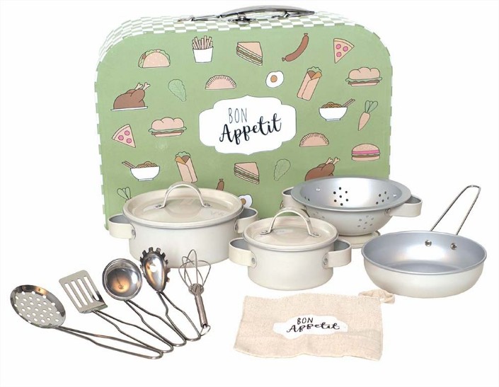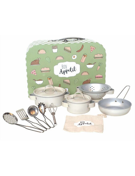 С този комплект малкият готвач има всичко необходимо, за да приготви вкусно ястие.