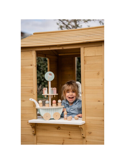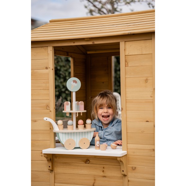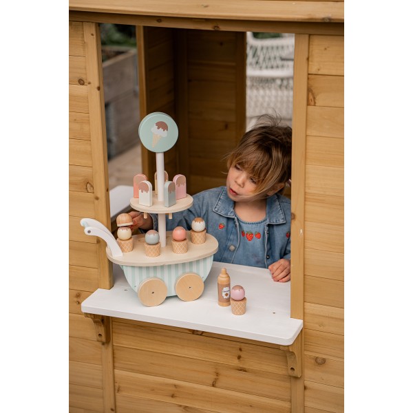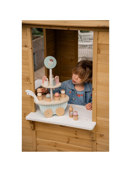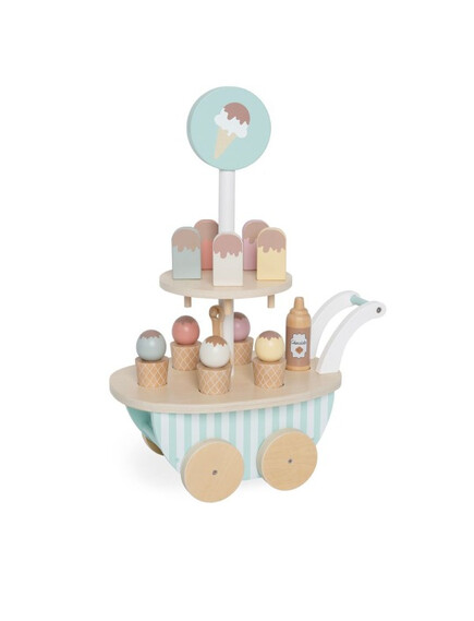 - 1 дървена количка за сладолед с места за сладолед и колела за лесно придвижване