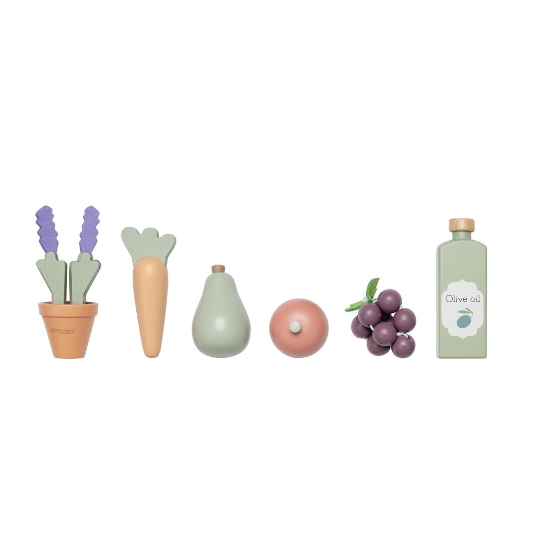 ✔️ Дървени зеленчуци, хляб, сирене и други продукти за реалистична игра на пазар