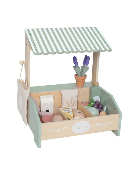Отвори своя собствен мини маркет и се потопи в безкрайни часове креативна игра! Мини Маркет на Jabadabado е идеалният дървен комплект за ролеви игри, където децата могат да продават, опаковат и броят продукти, като учат основни умения чрез забавление