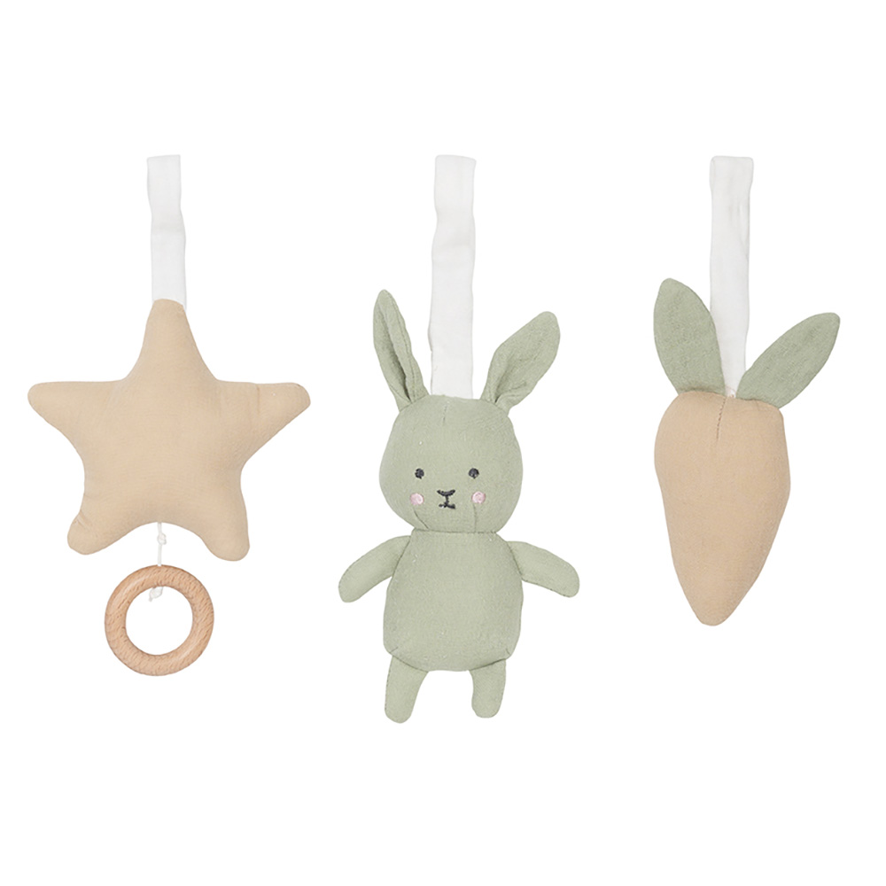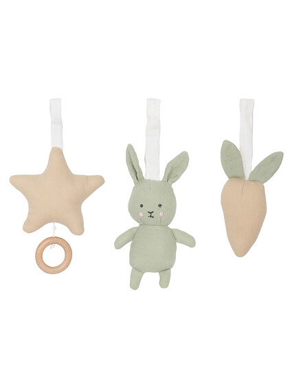 Звездата пуска приспивна мелодия, а зайчето има дрънкалка вътре, която създава интересен звук за бебето.