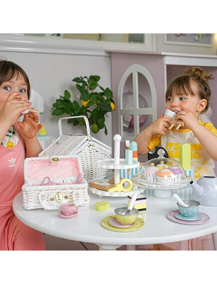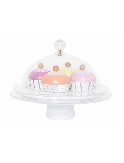 Сетът включва поставка за мъфини с капак и 4 броя различни мъфини. Играта насърчава въображението на децата и ще носи много усмивки!