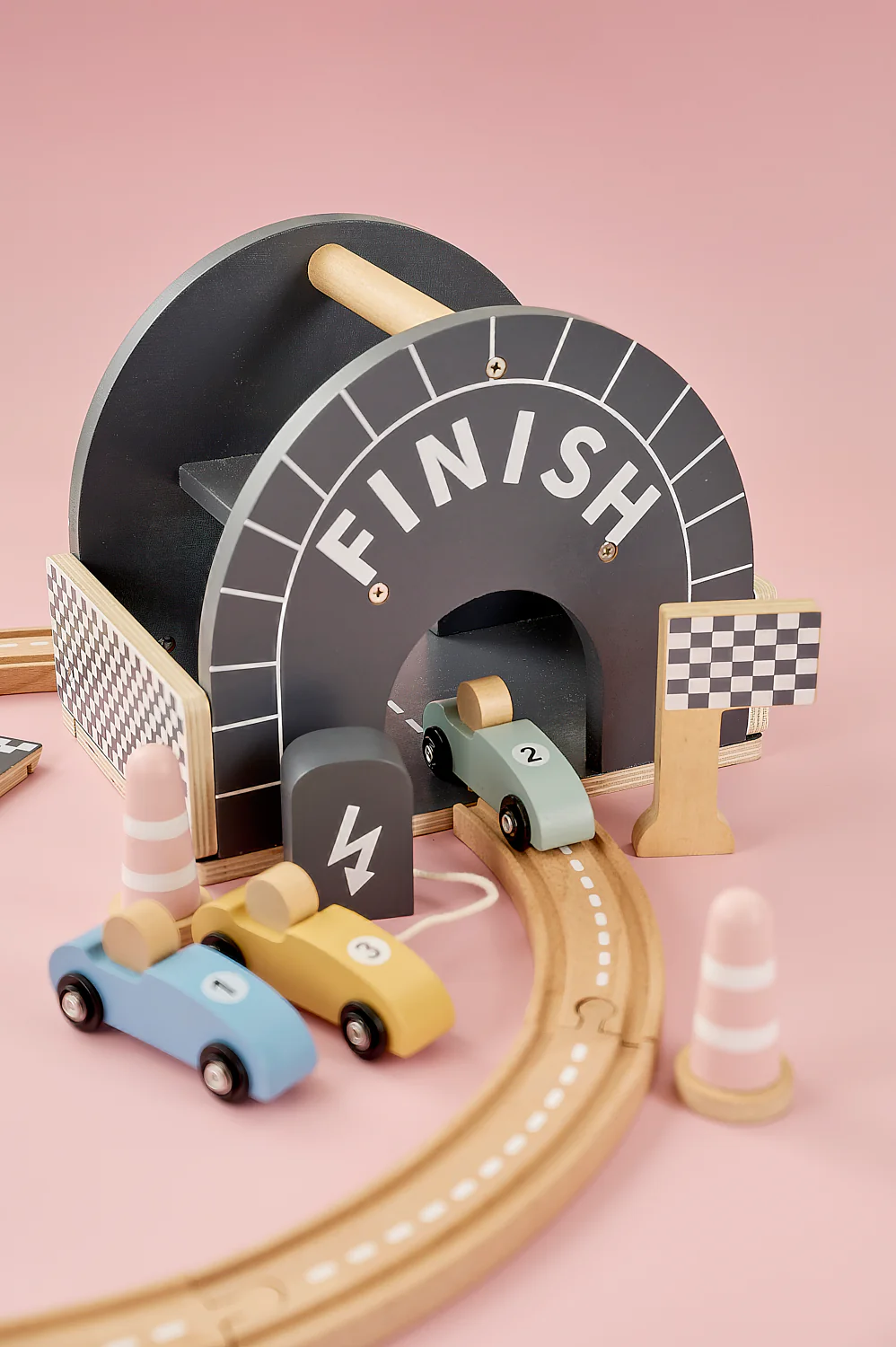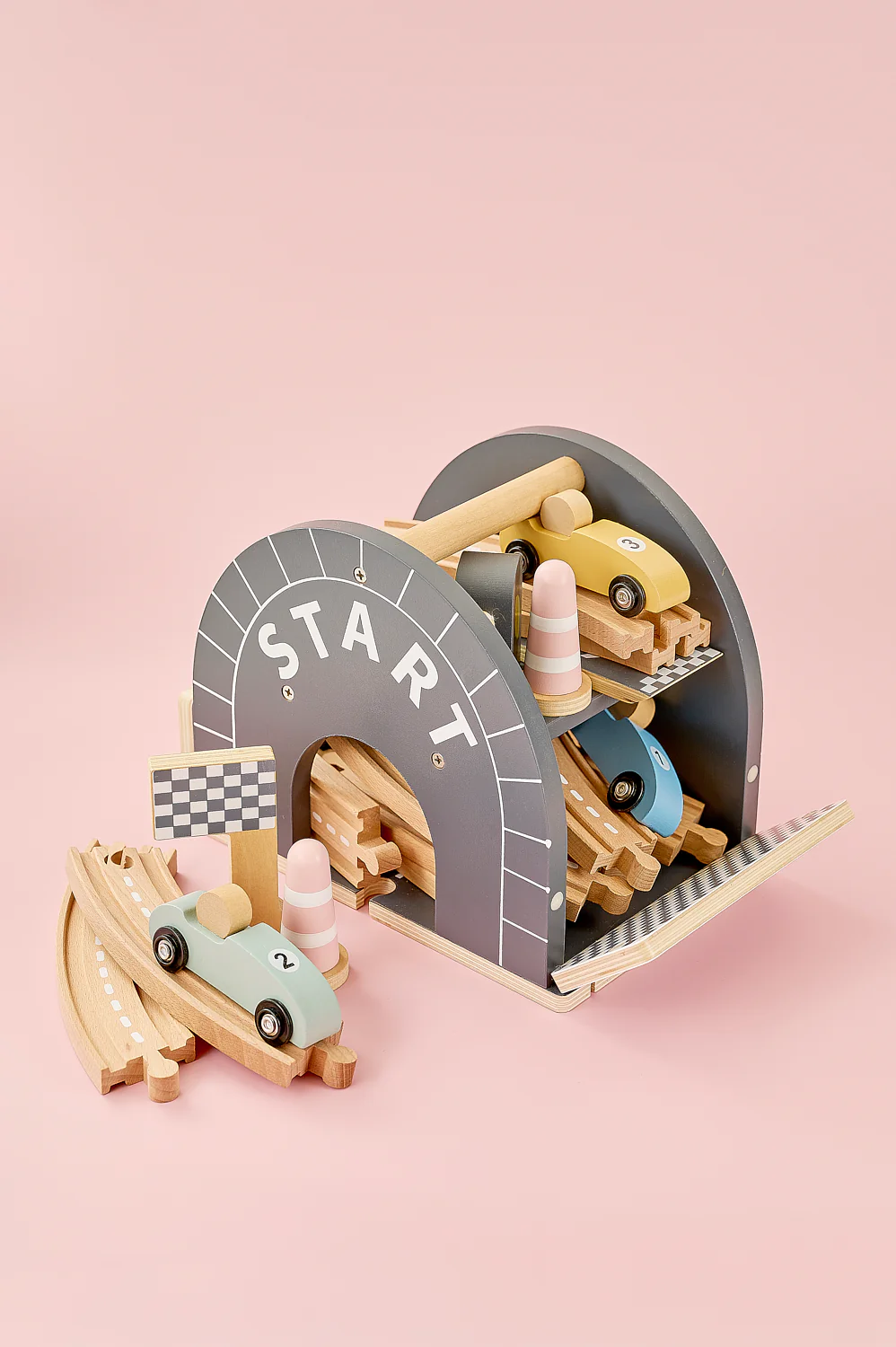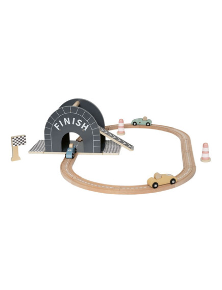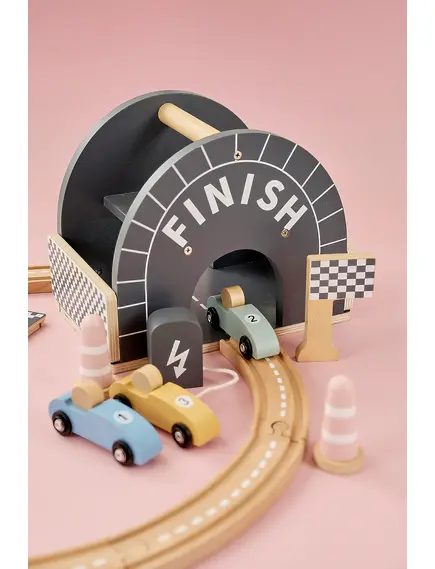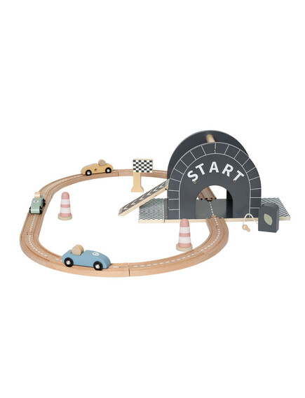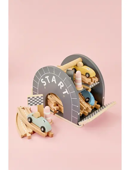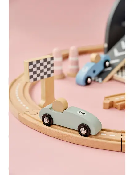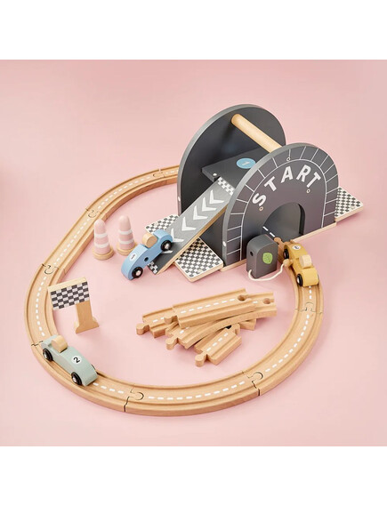 Пистата е с овален дизайн, плавни завои, ясно обозначена старт–финал линия и впечатляваща многоетажна рампа, от която количките се спускат с ускорение. Идеалната игра за малките почитатели на "високите скорости" - било то за приятелско състезание или за най-вълнуващия „детски шампионат“ у дома!