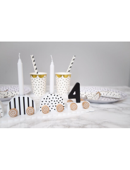 Поставете свещичка с възрастта, на която става дете в последния вагон а останалите свещи преди това.