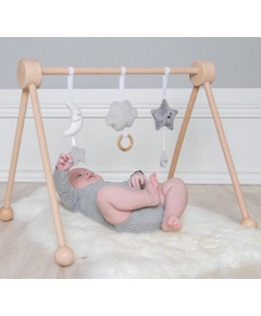 Активната гимнастика е чудесно занимание за Вашето бебе!! Тези висящи играчки са изключително красиви и лесни за хващане от малки ръчички. Малката звезда възпроизвежда класическия звук на приспивна песен, а другите две са меки и сладки играчки. Подходяща от...