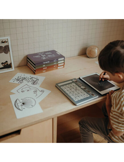 С 30 уникални изображения/дизайна, той е идеален за развитие на въображението, подобряване на фината моторика и безопасно запознаване на детето с първите стъпки на работа с екран и писалка — без разсейвания.