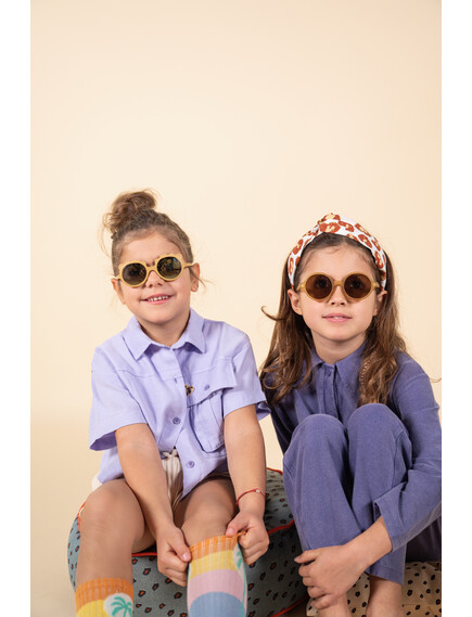 Вдъхновени от 70-те, слънчевите очила Woam с кръгла форма и стилна рамка ще впечатлят малките изследователи, осигурявайки им защита от слънцето.