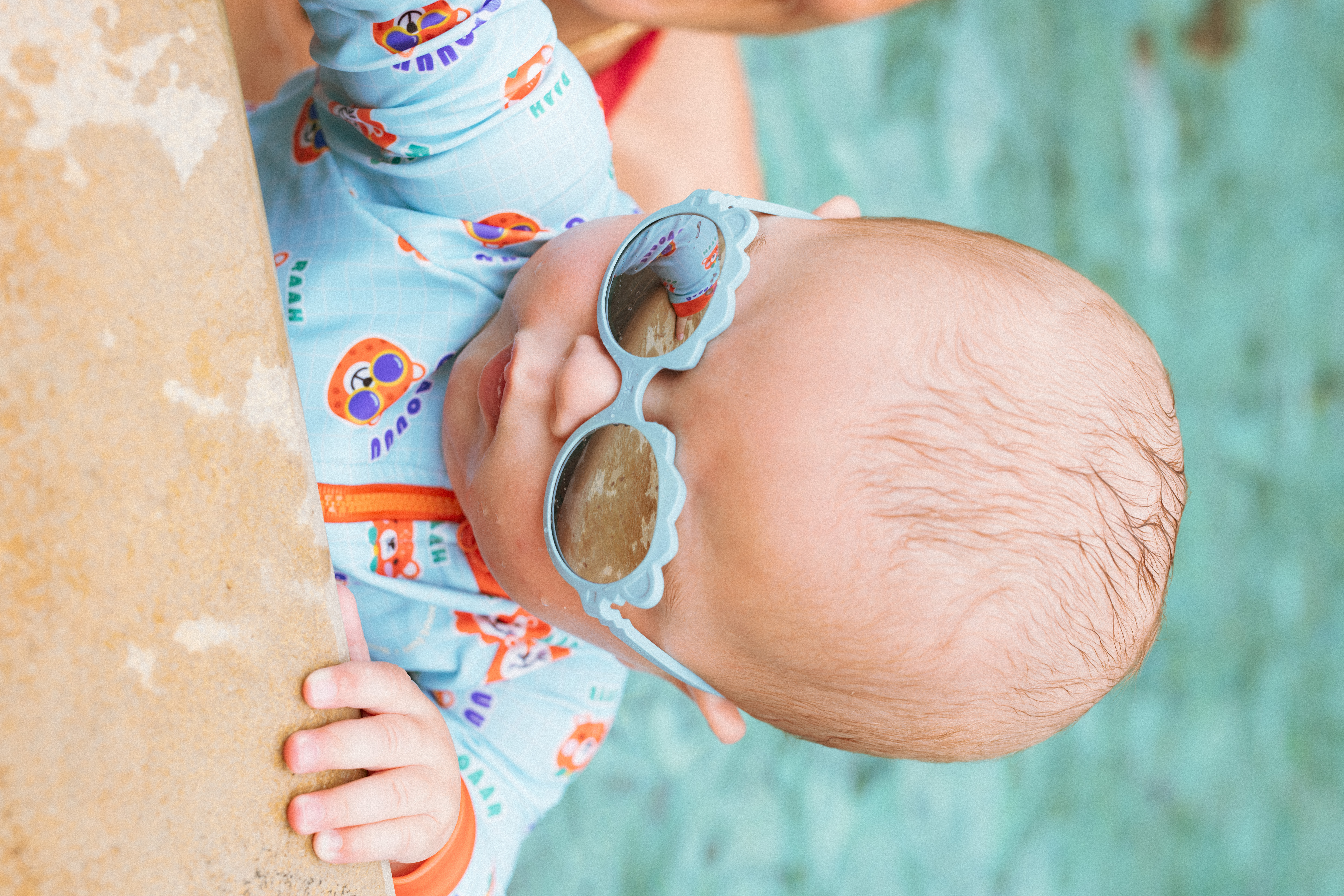 Към този модел очила има включена ластична лента, която да държи очилата на главичката на бебето.
