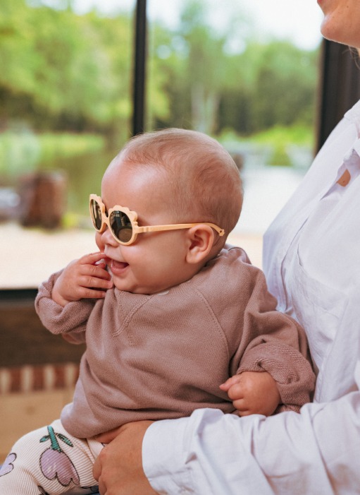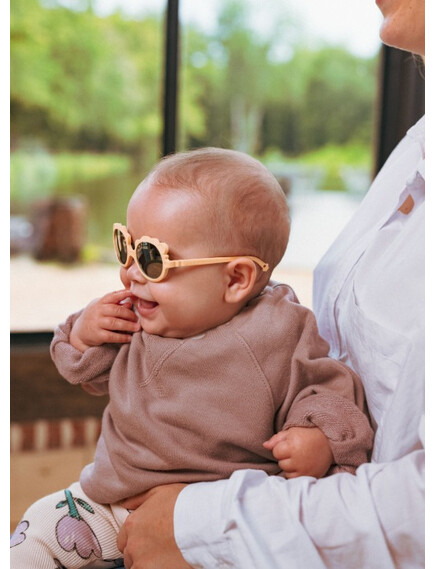 Към този модел очила има включена ластична лента, която да държи очилата на главичката на бебето.