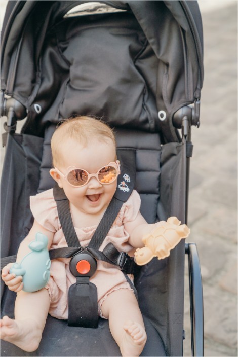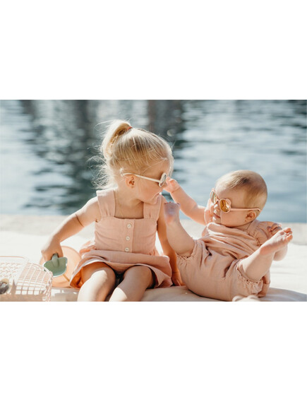 Към този модел очила има включена ластична лента, която да държи очилата на главичката на бебето.