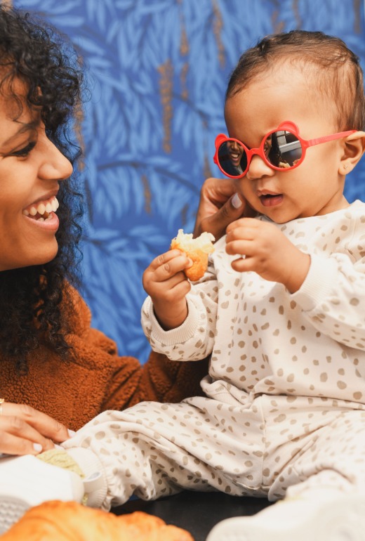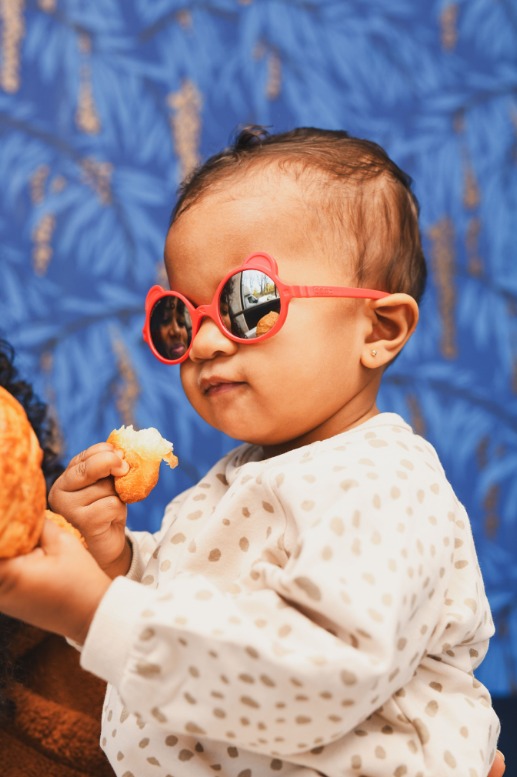 Към този модел очила има включена ластична лента, която да държи очилата на главичката на бебето.