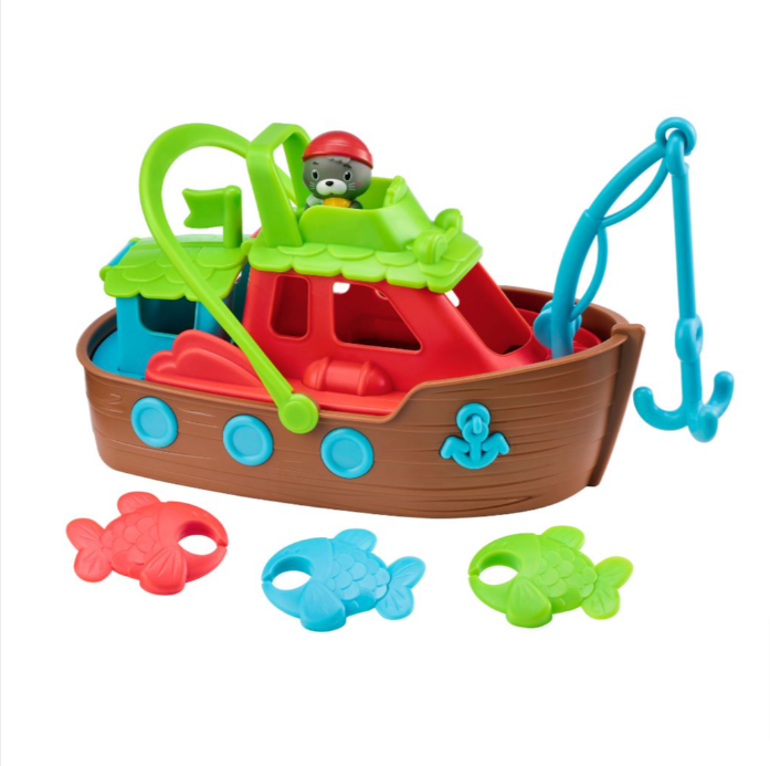 - Включени аксесоари - 3 малки, сладки рибки, рибарска въдица, която позволява на децата да ги уловят и фигурка на рибар, който да допълни екипажа.