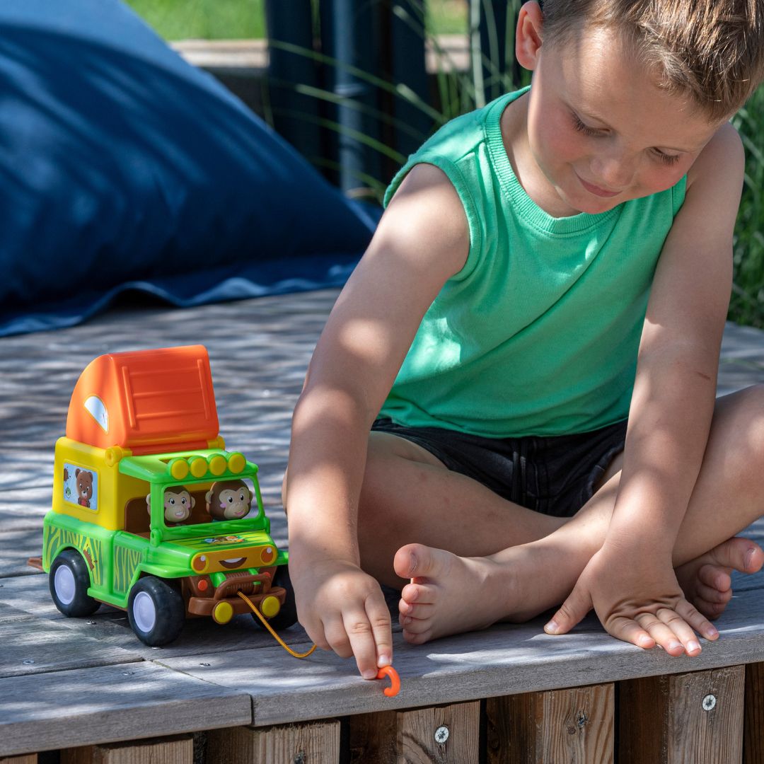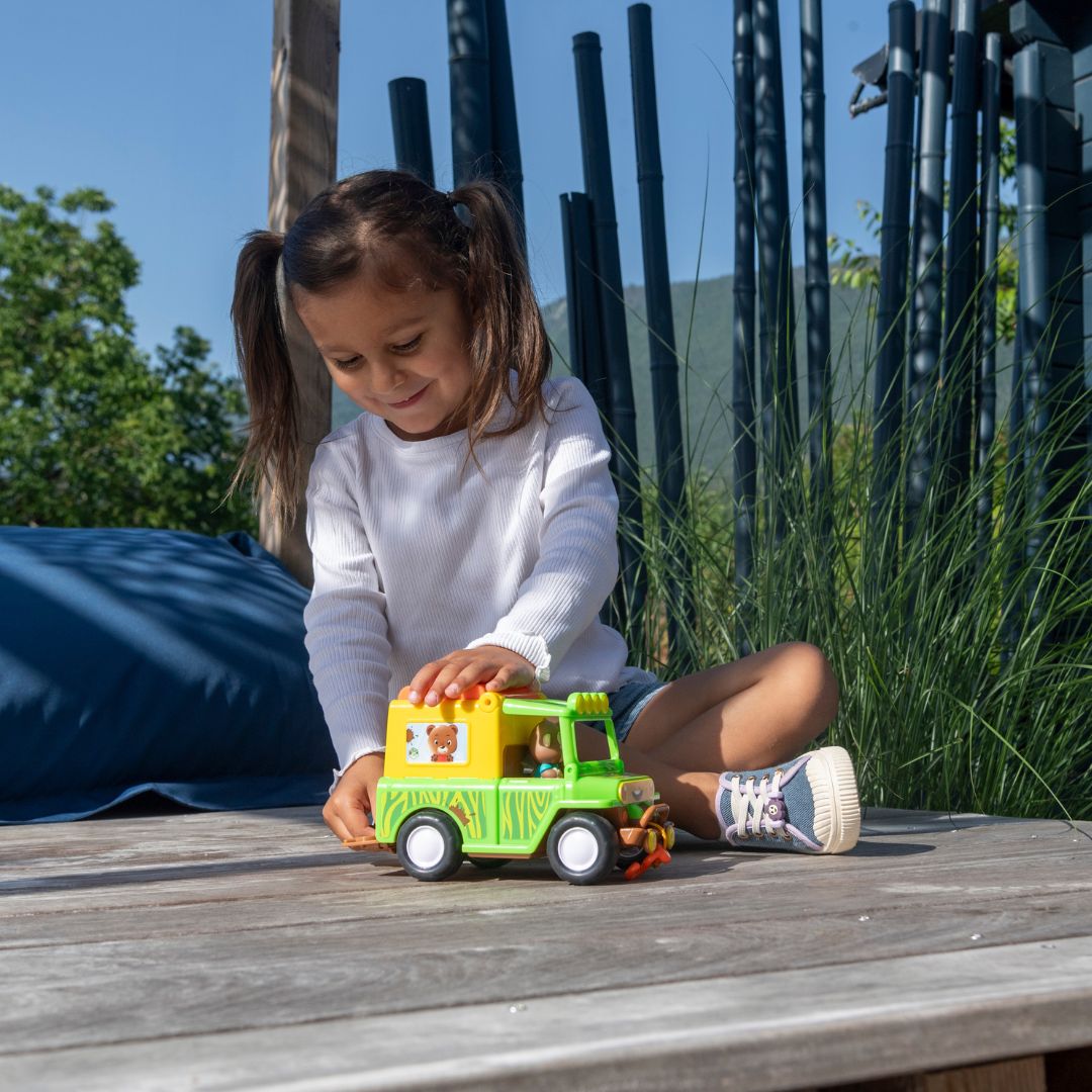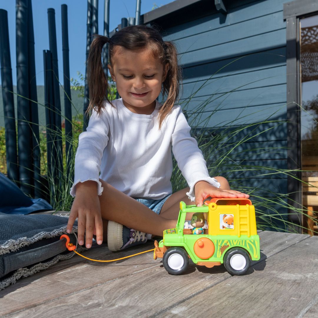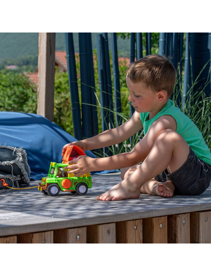 Това не е просто обикновен джип. Както всяка играчка на Klorofil и джипът крие много тайни и изненади, които да събудят въображението в децата. Има лебедка и манивела, за да може да преодолеете всяко препятствие пред Вас!