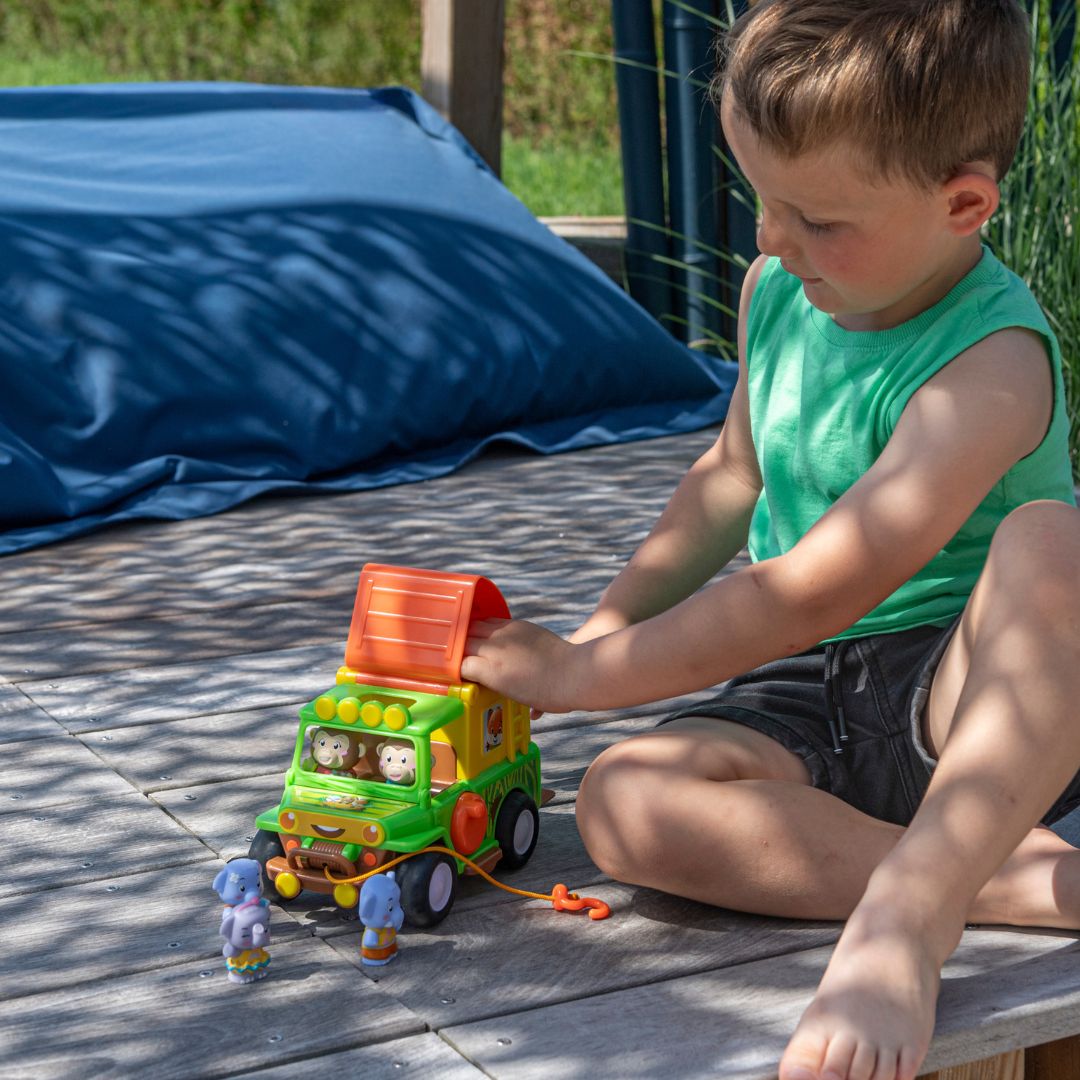 Преносим и практичен: Благодарение на дизайна си, джипът се транспортира изключително лесно от едно място на друго, така че детето Ви да може да играе навсякъде.