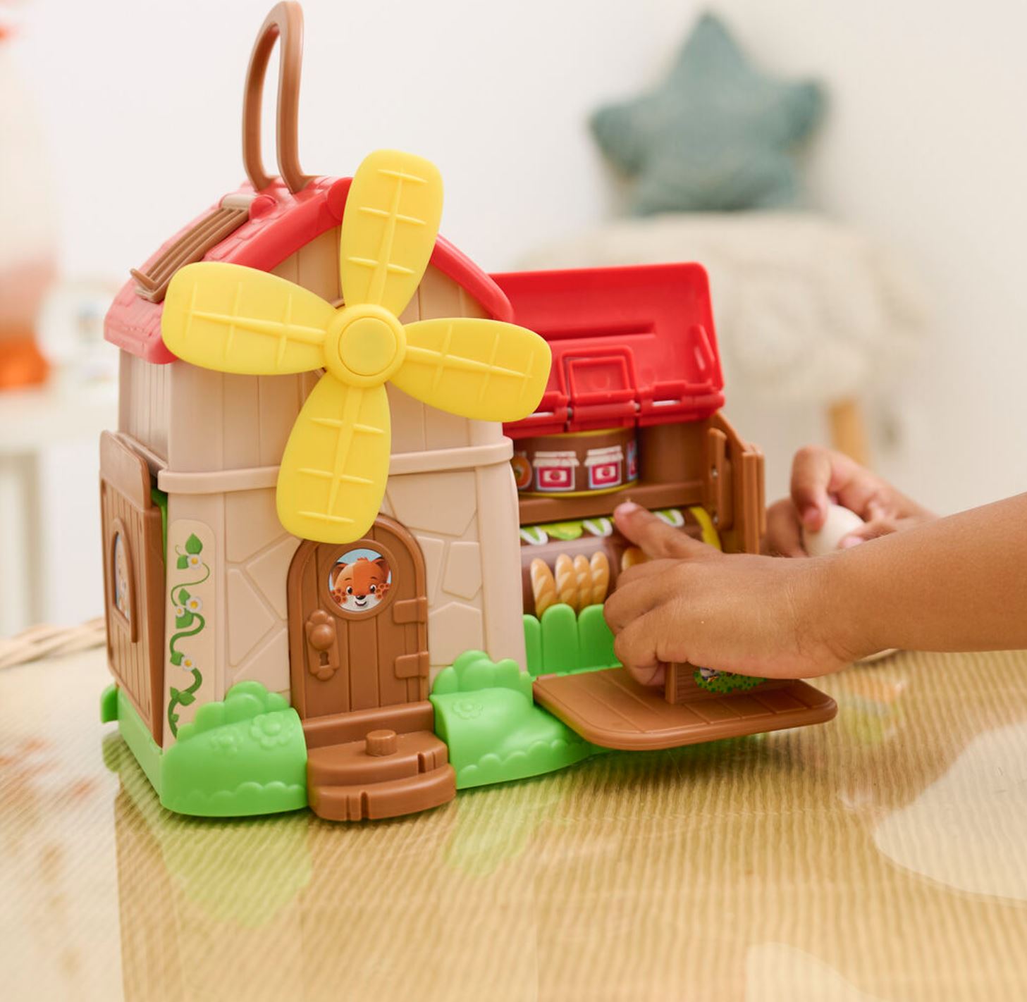 И всичко това се побира вътре в самата мелница! Щом се затвори, детето може лесно да я вземе навсякъде със себе си, благодарение на удобната дръжка!