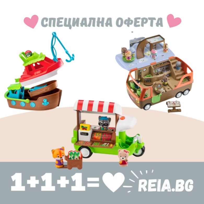 Невероятна оферта, включваща 3 играчки от популярната колекция на Klorofil! Кемперът, рибарската лодка и сергията за плодове и зеленчуци. Всяка играчка е пълна с изненади, идеални за насърчаване на детското въображение.