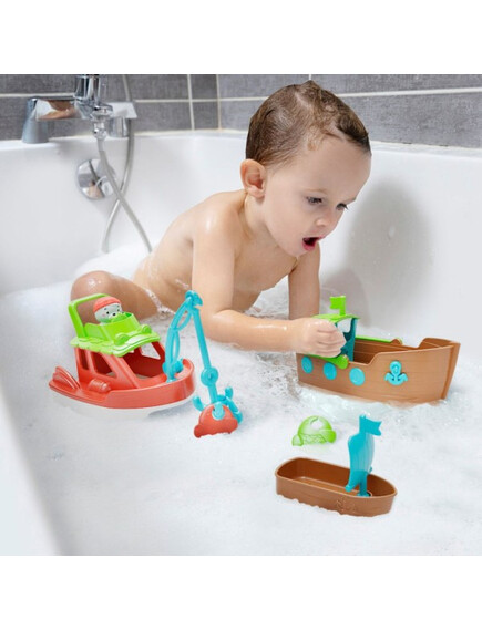 - Включени аксесоари - 3 малки, сладки рибки, рибарска въдица, която позволява на децата да ги уловят и фигурка на рибар, който да допълни екипажа.