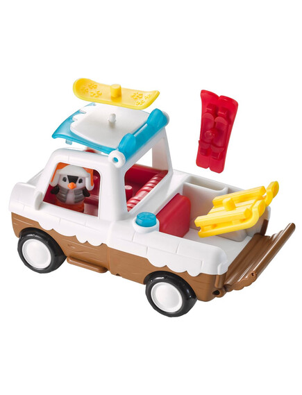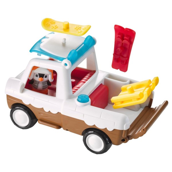Отправете се на приключение по снежните писти с фантастичния джип, който отвежда малкия изследовател в света на фантазията. С аксесоарите ски, сноуборд и шейни детето ще открие радостта от зимата! Натискането на бутон разкрива скрити изненади, а сладките пингвини правят преживяването още по-магическо.