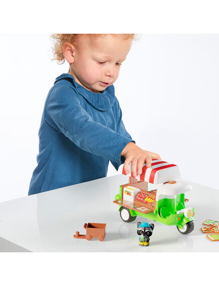 Превърнете ученето в игра! Камионът учи детето на важността на здравословното хранене. С функционална POP везна и въртящ се панел, детето научава за плодовете и зеленчуците, как се пазарува и плаща, и развива важни житейски умения.