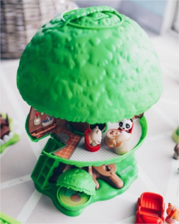 И когато играта приключи, натиснете покрива(короната) на дървото, за да го затворите заедно с всички играчки към него и горските герои. Може да вземете с вас дървото навсякъде, благодарение на удобната дръжка, която има!