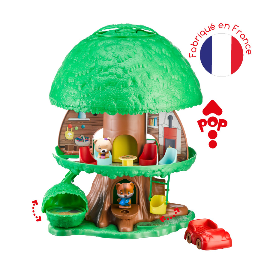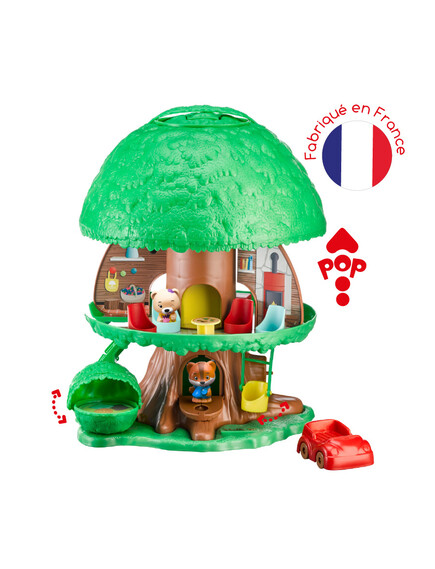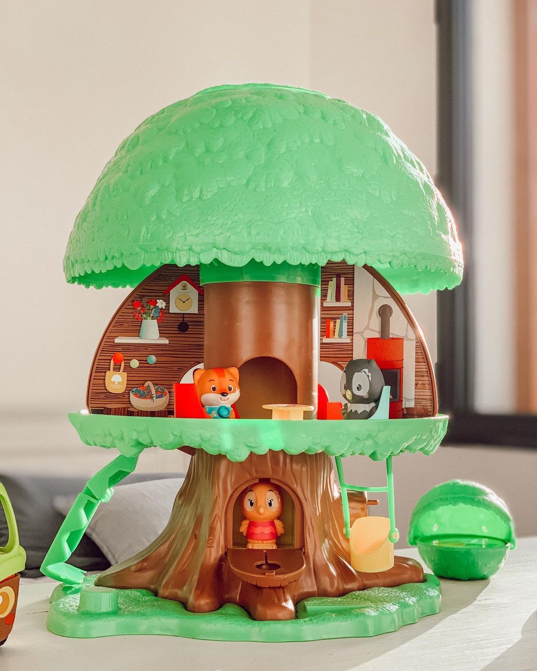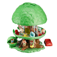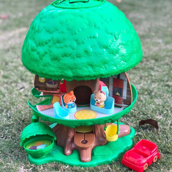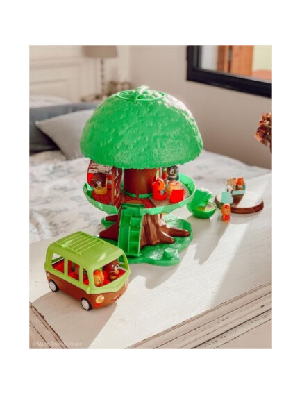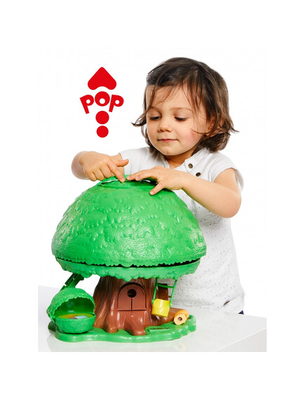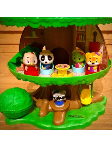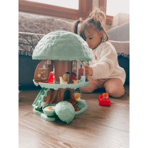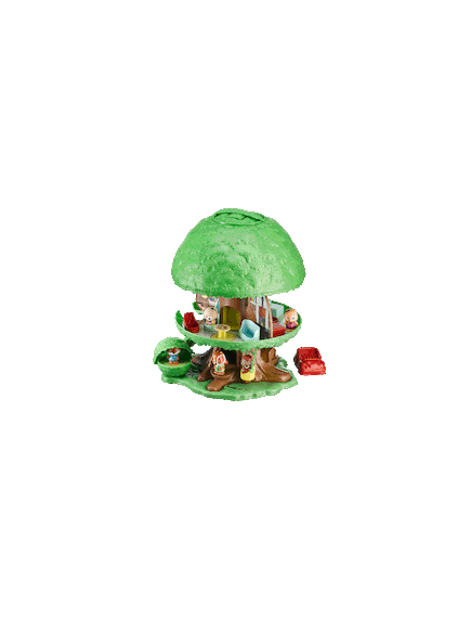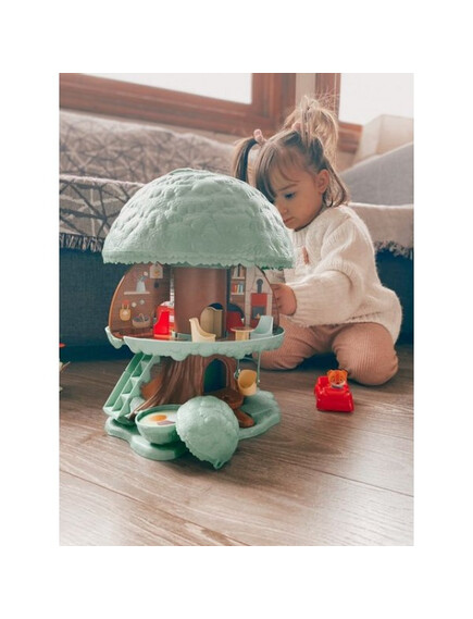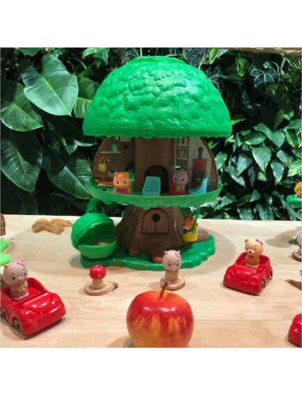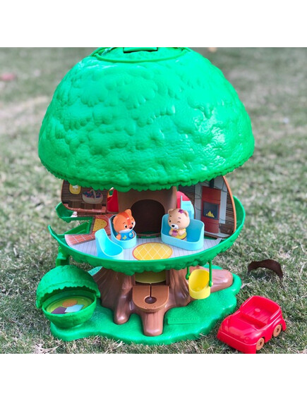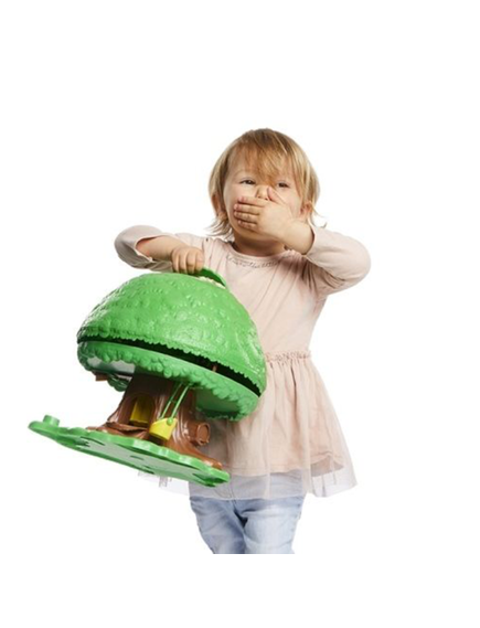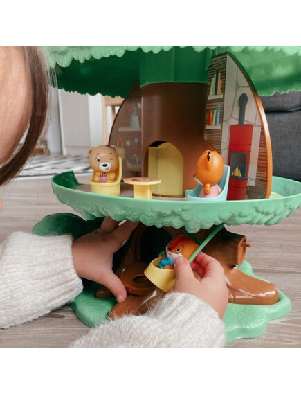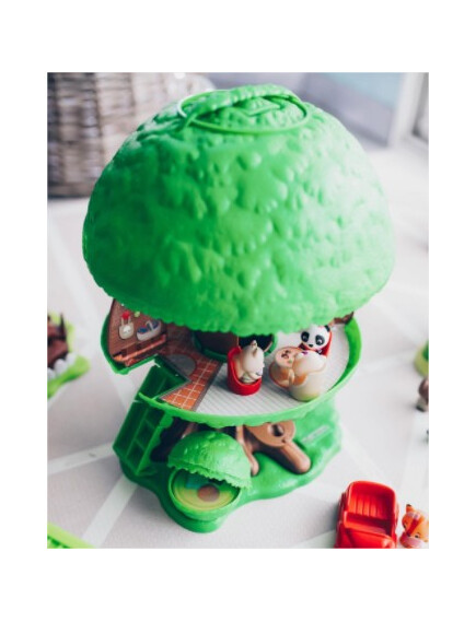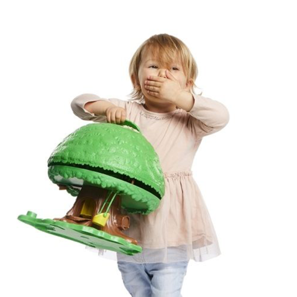 Натиснете короната на дървото и ХОП, то ще разкрие един цял "скрит" свят с различни стаички - баня, кухня, всекидневна и дори гараж! И още много изненади като асансьор, храст със скрито място за почивка отвътре, стълбище, кола, люлка...