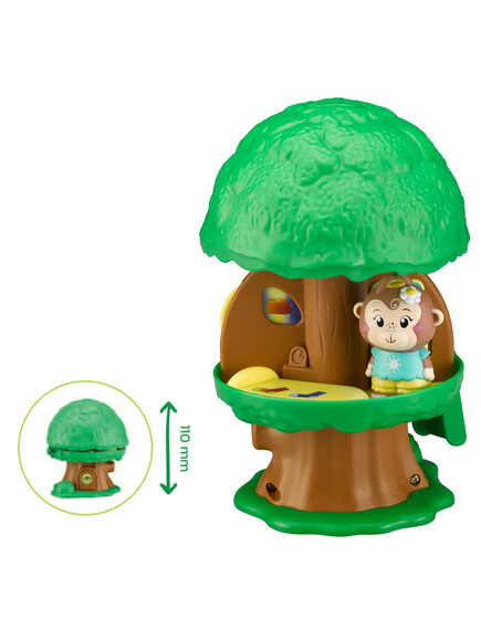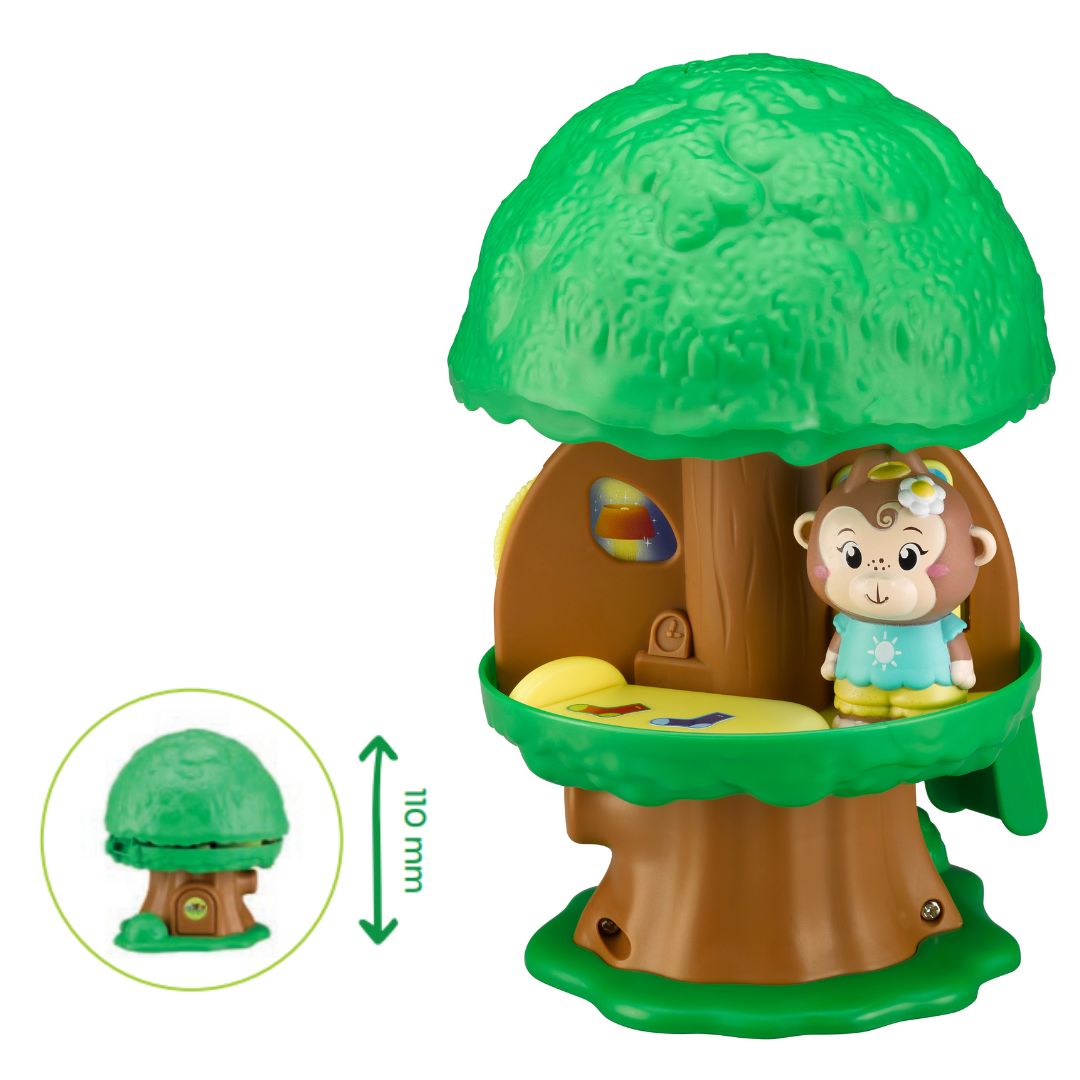 Натиснете вратата и вижте как дървото се отваря! Очакват ви 3 вълнуващи стаи, всяка пълна с интерактивни детайли, вдъхновени от ежедневието: