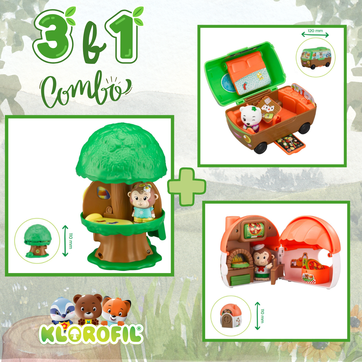 Отпразнувайте юбилея на емблематичната серия Klorofil с това специално МИНИ Комбо – комплект от три обичани играчки в компактни, преносими варианти. Всяка от тях носи духа на магическата гора и вдъхновява малките откриватели да създават свои собствени приказни истории – където и да се намират!