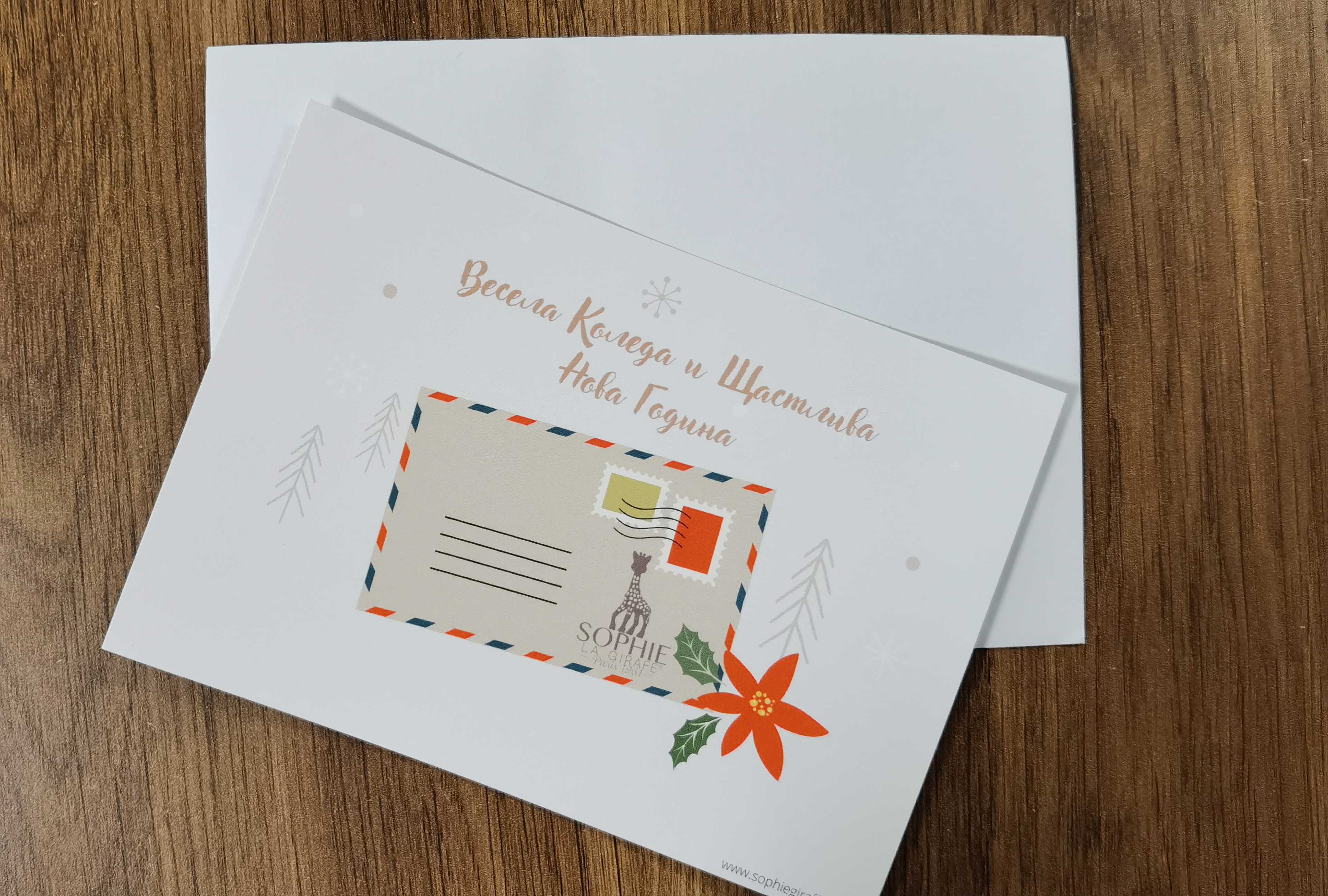 Направете коледният подарък на близките ви хора още по-специален, като добавите към него коледна с персонализирано послание с лика на любимото ни Жирафче Софи!