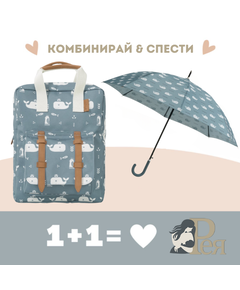 Fresk: Голяма раница 36x26 см + чадър от рециклируеми материали Whale