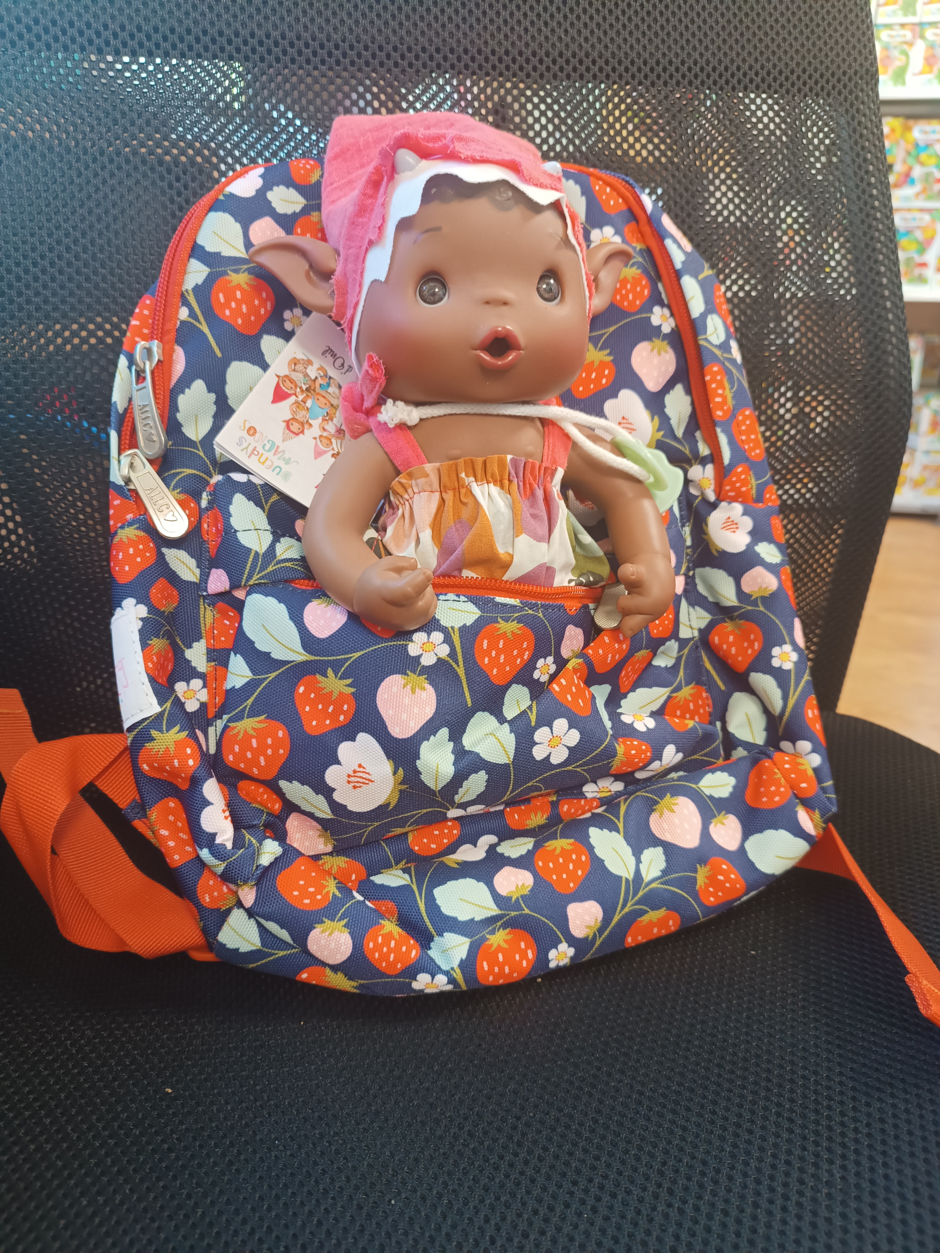 Комбо комплект „Магия и приключения“: Малка раничка A little lovely company "Ягодки" + Ръчно изработена кукла от Испания - Duendy по избор