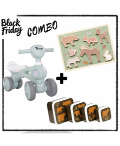 Black Friday Combo състоящо се от 3 чудесни продукта подходящи за подарък.  1. Bo Jungle: Музикално колело "Синьо" Прекрасно музикално колело, което ще научи детето Ви да балансира.  Колелото, от което имате нужда! Ще научи детето Ви да балансира и ще развие...