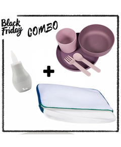 Black Friday Combo състоящо се от 3 чудесни продукта подходящи за подарък.  1. Aerosleep - възглавница за безопасен сън размер S Произведена в Белгия, възглавницата Aerosleep е здравословна и практична. Благодарение на 2-та слоя пълнеж от студена пяна, имате възможност да...