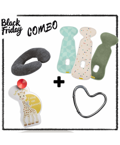 Black Friday Combo състоящо се от 4 чудесни продукта подходящи за подарък.  1. Dooky Original: Възглавница за път Dark Grey Възглавница за врат от Dooky Original за удобни и безопасни пътувания!  Идеална е за дълги пътувания с кола, количка или за всяко друго пътуване и...